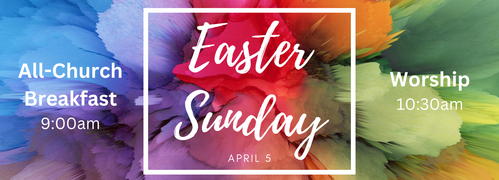 An all-church breakfast begins at 9:00am in the Fellowship Hall! We will gather in the Sanctuary at 10:30am as we celebrate the Risen Christ!